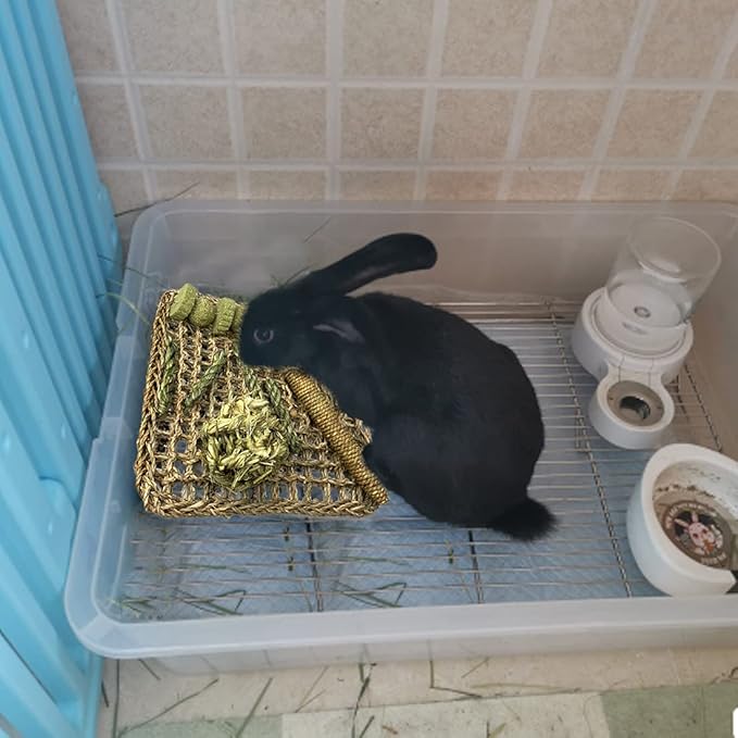 - THE SEAGRASS MAT : Our seagrass MATS are hand-woven from 100% natural seagrass. They have no odor and are friendly to rabbits.You can put a mat in a cage and use it as a foot pad to protect the rabbit's feet.You can also put it on the ground, give it to the rabbits to play with, and you can give it to the rabbits to eat.The edge length of seagrass mat is 30 cm/11.8 in