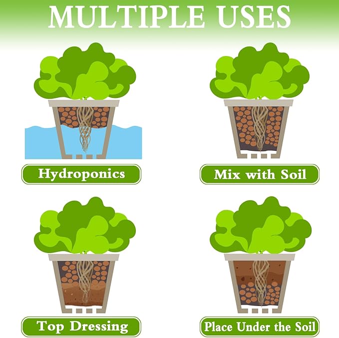 - Natural Material: Our expanded clay pebbles are natural, organic, porous and lightweight. They are baked at high temperature, no chalking in water. Therefore, leca is a good growth medium for hydroponic plants and soilless plants. These clay pebbles are a must-have for perfect moisture control and happy roots