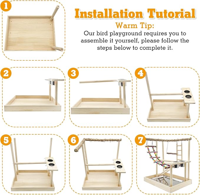 - WOODEN,STABLE,STURDY: Hamiledyi parrot playstand is made of handmade 100% natural wood. Strong, durable and bird stand perch is safe to chew, all the parts are connected with screws. This way, the bird play gym is more sturdy and more stable, and will not hurt the bird's feet. Attention Please: you need to assemble the bird stand by yourself