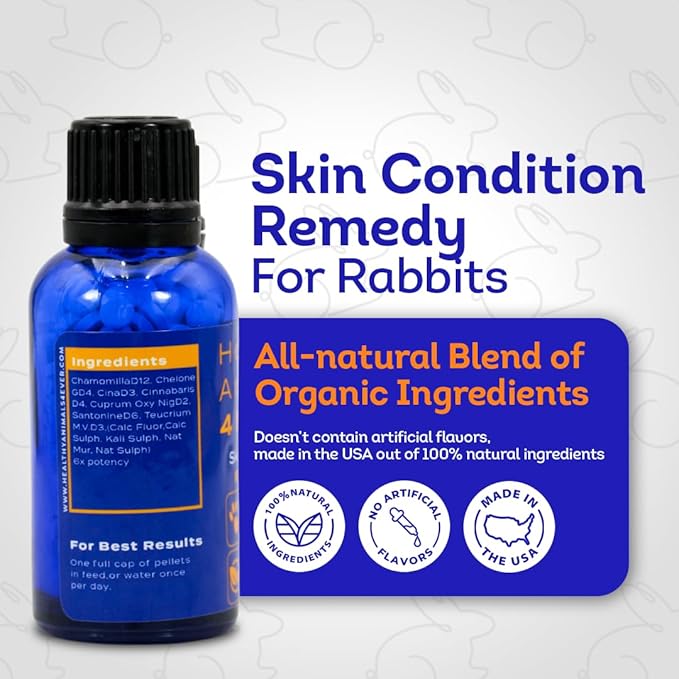 - ALL-NATURAL SKIN RELIEF: Our all-natural treatment is designed to effectively address common skin conditions in rabbits, including mites, fleas, and other irritations, offering a safe and homeopathic solution.