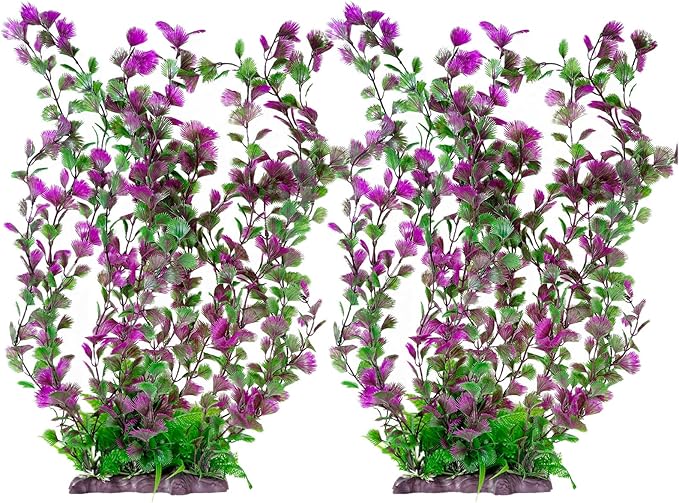 - TALL AQUARIUM PLANTS EASY TO MAINTAIN : Aquarium plants plastic do not require specialized lighting, fertilizers or carbon dioxide. Compared to real plants, large aquarium plant is very easy to clean, saving time and effort and eliminating the hassle of maintenance. These fish tank plants for decorations look lifelike and can be used for a long time, making it easy for you to enjoy the wonders of the aquarium world. Artificial aquarium plants size: 20.4 inches (H), ceramic base: 5.9 ร 3.1 inches. 2 pcs artificial aquarium plant to make your aquarium vibrant and more beautiful