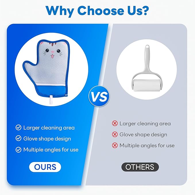 - 【Effortless Pet Hair Removal】 Say goodbye to sticky rollers! Our pet hair remover glove features a glove-style design that easily combs and lifts loose fur with simple back-and-forth motions—perfect for quick cleanups on pets and surfaces.