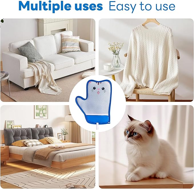 - 【Versatile Cleaning Tool】 Transform into a multi-use pet hair removal tool! Soft, skin-friendly materials make it gentle for grooming pets or tackling fur on clothes, sofas, and carpets—no more hand strain.